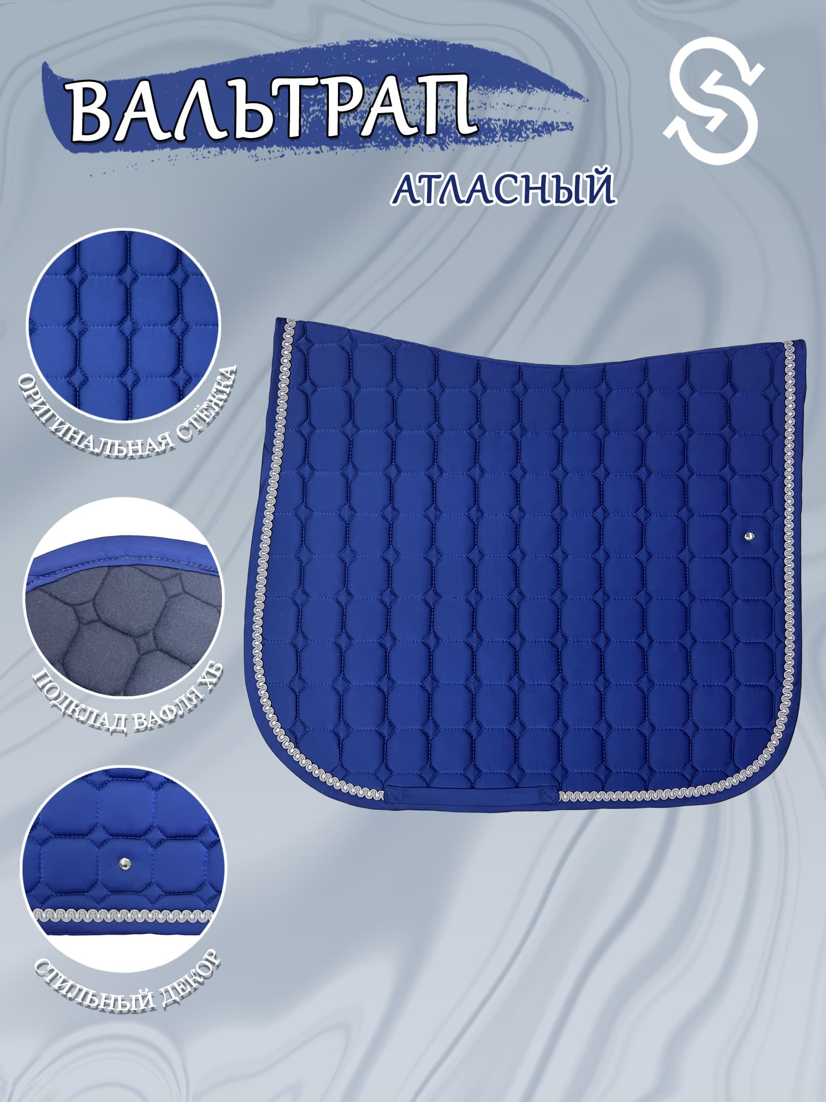 Шикарный выездковый вальтрап, выполненный в эффектном цвете с яркой полосой декора. Наш выездковый вальтрап сочетает в себе качество и стиль, что делает его идеальным выбором для любителей верховой езды. Произведен в России, изготовлен из хлопка, что обеспечивает комфорт во время тренировок и соревнований. Плотно прилегает к спине лошади, обеспечивает отличную амортизацию под седлом. Благодаря специальной подкладке из 100% хлопка, вальтрап эффективно отводит влагу, предотвращая появление потертостей и рубцов. Практичный и прочный материал. Внутренняя часть - хлопок, быстросохнущий и дышащий, обеспечивает комфорт лошади во время интенсивной тренировки. Верхняя часть - атлас, эффектный и износостойкий. Вальтрап с мелкой стежкой, которая способствует его долговечности и надежности. Рекомендации по уходу за вальтрапом: стирка при температуре 30 градусов, сушка на плоской поверхности, избегая прямых источников тепла. Не требует глажки или отпаривания.