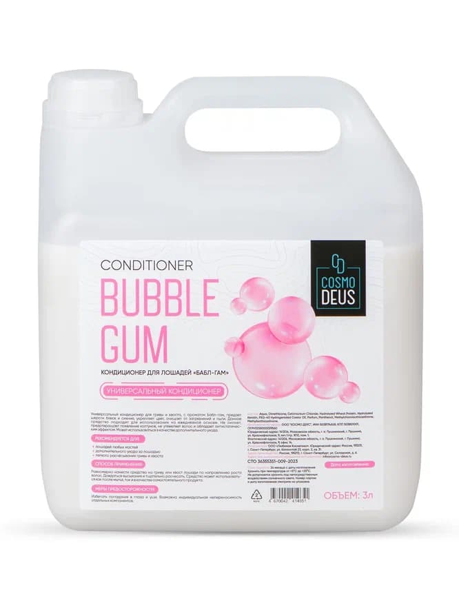 Универсальный кондиционер для гривы и хвоста, с ароматом Бабл-гам, придает шерсти блеск и сияние, укрепляет цвет, очищает от загрязнений и пыли. Данное средство подходит для использования на ежедневной основе. Не липнет, предотвращает появление колтунов, не утяжеляет волос и обладает антистатическим эффектом. Может использоваться в качестве дополнительного ухода. Рекомендуется для: — лошадей любых мастей; — дополнительного ухода за лошадью; — легкого расчёсывания гривы и хвоста. Способ применения: Равномерно нанести средство на гриву, или хвост лошади по направлению роста волос. Дождаться высыхания и тщательно расчесать. Средство может использоваться как после мытья, так и в качестве самостоятельного продукта. Меры предосторожности: избегать попадания в глаза и уши. Возможна индивидуальная непереносимость отдельных компонентов.