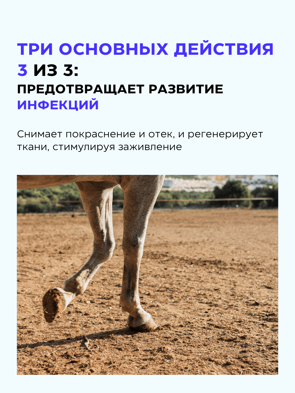Противовоспалительное средство для копыт снимает покраснение и отек, и регенерирует ткани, стимулируя заживление.