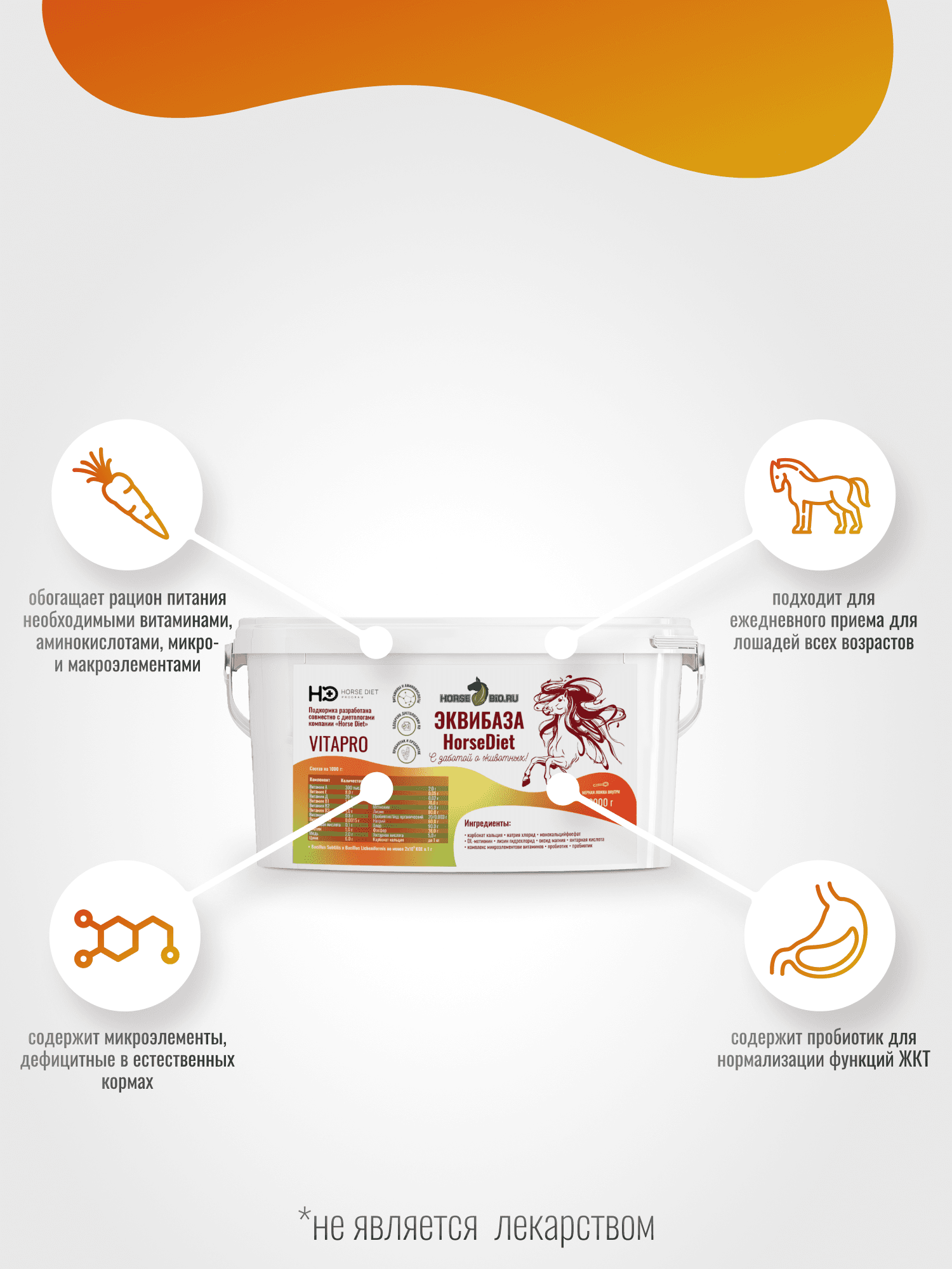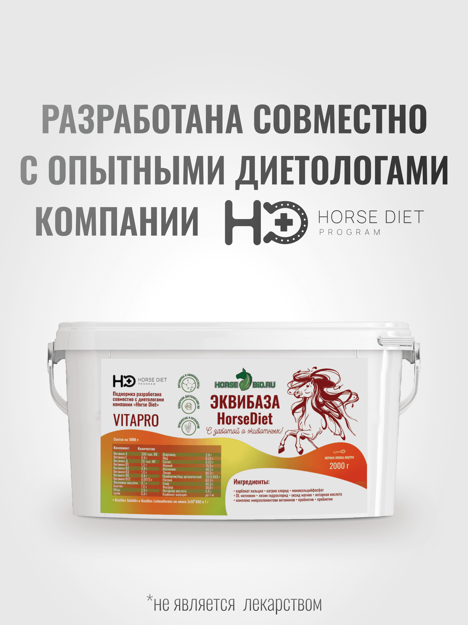 Подкормка ЭквиБаза VitaPro для лошадей, 2000г
