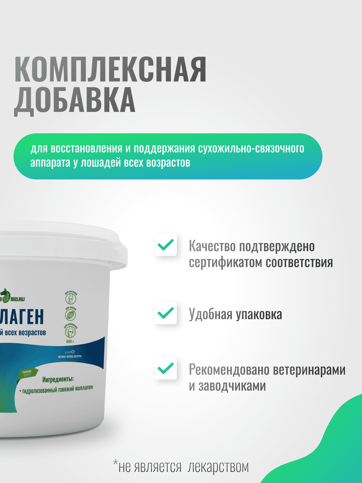 Заботьтесь о здоровье своих лошадей, выбирая Коллаген Horse-Bio ArtroPro – отличный выбор для всех, кто желает обеспечить своим питомцам высокое качество жизни и поддержку в движении.