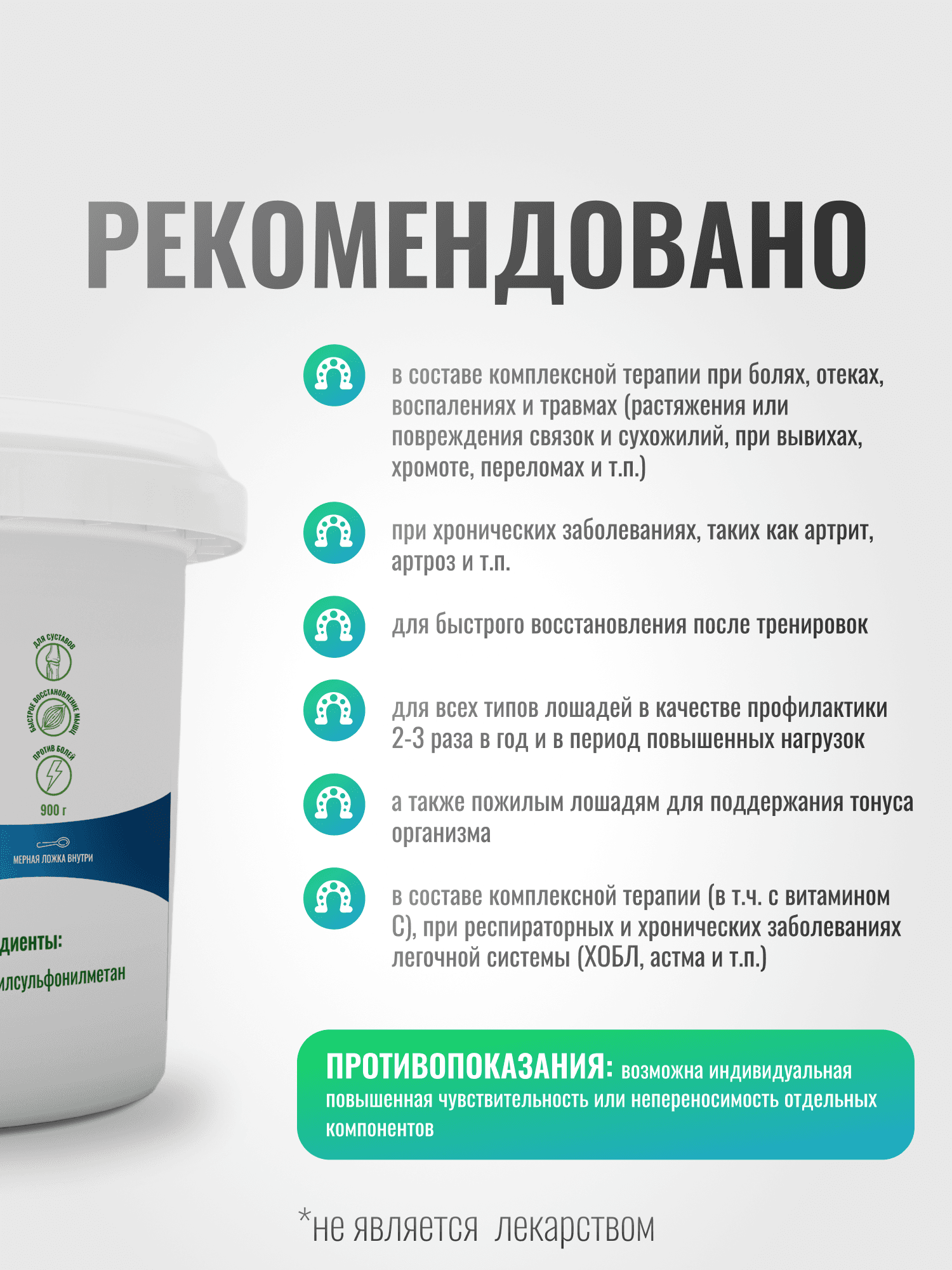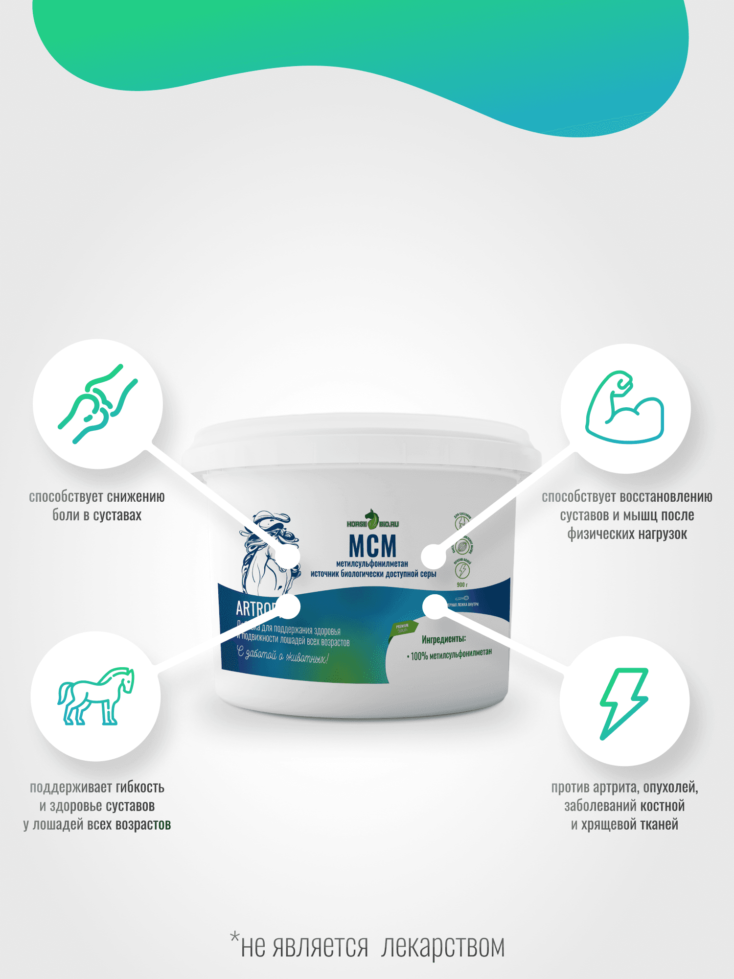 Добавка МСМ Horse-Bio ArtroPro – это высококачественная кормовая добавка, разработанная специально для поддержания здоровья лошадей. Подкормка направлена на укрепление опорно-двигательного аппарата ваших животных. Этот продукт идеально подходит для спортивных и рабочих лошадей, а также для тех, кто нуждается в дополнительной поддержке после травм или возрастных изменений. Основным компонентом добавки является метилсульфонилметан (МСМ), который известен своими противовоспалительными свойствами и помогает уменьшить болевые ощущения. Использование МСМ способствует улучшению состояния суставов и связок, а также поддерживает здоровье мышц, что особенно важно для активных лошадей. Данная добавка эффективно борется с отеками и способствует восстановлению после физических нагрузок. Регулярное применение продукта поможет вашей лошади оставаться в отличной форме и предотвратить развитие хронических заболеваний опорно-двигательного аппарата. Добавка легко усваивается и может применяться в качестве профилактики, а также той необходимой поддержкой при наличии проблем с суставами. Это отличное решение для владельцев, стремящихся обеспечить своим питомцам долгую и активную жизнь. Подкормка представлена в удобной упаковке, весом 900 г. Для достижения наилучших результатов, не забывайте следовать рекомендациям по дозировке и срокам применения продукта. МСМ Horse-Bio ArtroPro станет надежным помощником в заботе о здоровье вашей лошади.