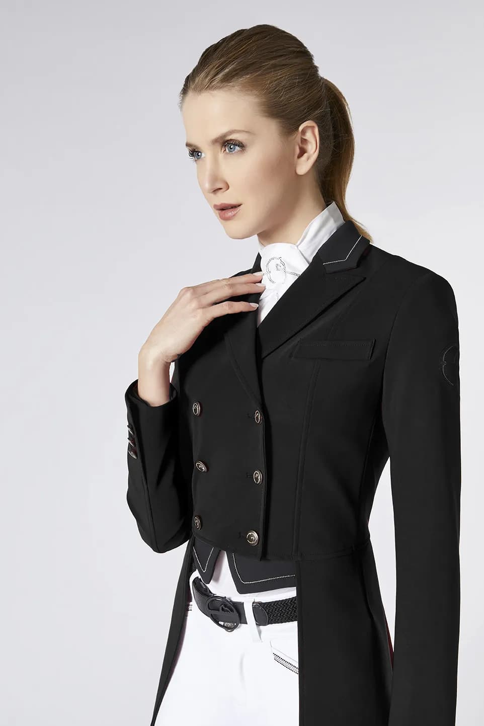 Vestrum Mechel TK — элегантный женский фрак из лёгкой эластичной TK-ткани, обеспечивающей комфорт и свободу движений в седле. Имеет утончённый крой, акцентные детали и аккуратные длинные фалды, которые красиво ложатся в движении.