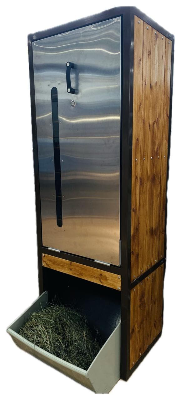 6 полок дают возможность закладывать 6 порций и программировать 6 кормлений в течение суток.Можно закладывать как сено, так и сыпучие корма. Есть возможность ставить кормления на паузу, на время прогулок