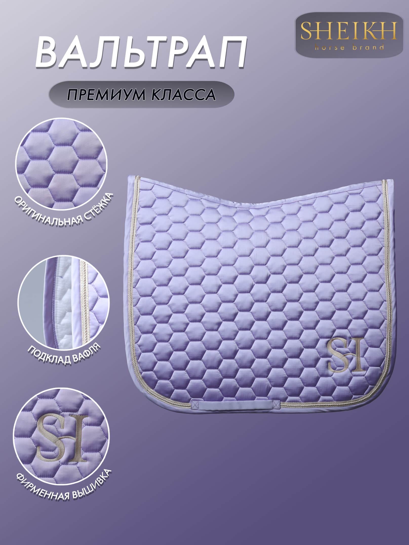 Вальтрап для верховой езды, конного спорта CANDY COLLECTION от SHEIKH Встречайте долгожданную новинку — коллекцию вальтрапов Candy Три потрясающих оттенка дополнят «гардероб» вашей лошади: - нежно-розовый - лиловый - небесно-голубой Каждый вальтрап выполнен из высококачественных материалов, которые обеспечивают комфорт вашей лошади и долговечность в использовании. Особая изюминка — золотая и серебристая окантовки, придающие элегантный блеск Candy — если этот мир кондитерская, то вы в ней — самый сладкий десерт!