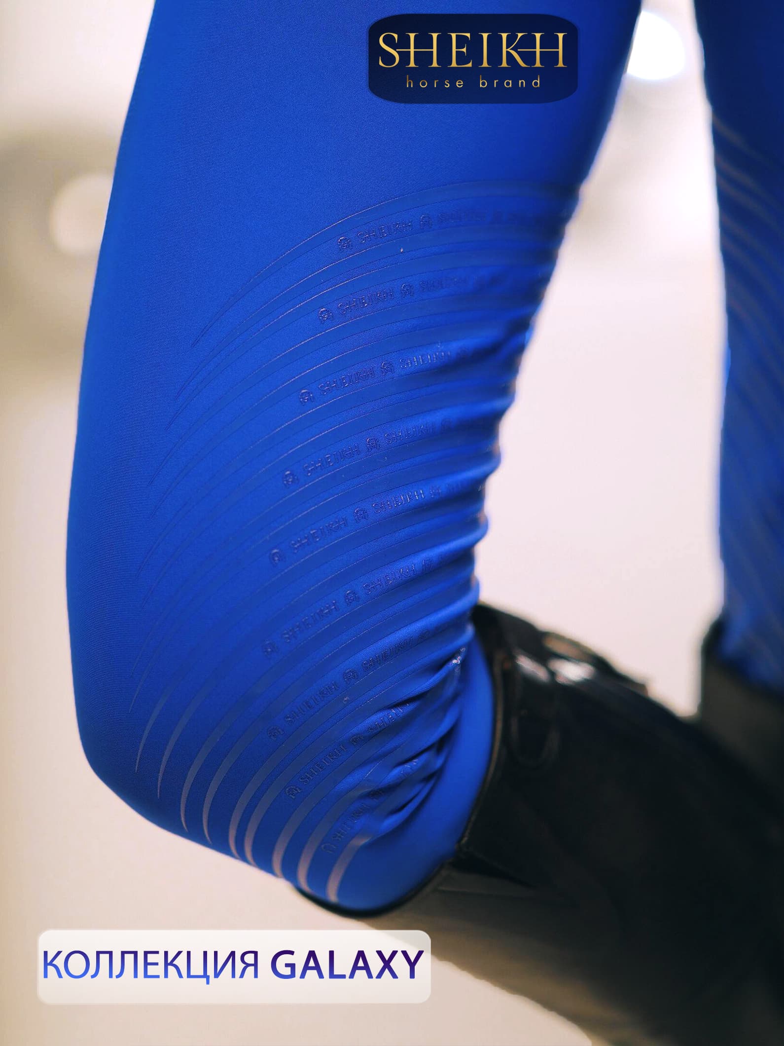 SHEIKH GALAXY | Васильковые бриджи — энергия звезды в движении Неон не нужен, когда на тебе GALAXY Blue Эти васильковые бриджи — будто вспышка звезды среди космоса манежа. Яркие, уверенные, с характером. Они созданы для всадниц, которые не прячутся в тени, которые готовы сиять Ты не часть орбиты — ты её центр SHEIKH GALAXY — «Космос наш» Детали: Бриджи изготовлены из спортивной ткани. Полная силиконовая лея в виде логотипа бренда. Брендирование на бедре. Уход: Машинная стирка на деликатном режиме, при температуре не более 30°С. Сушка на открытом пространстве